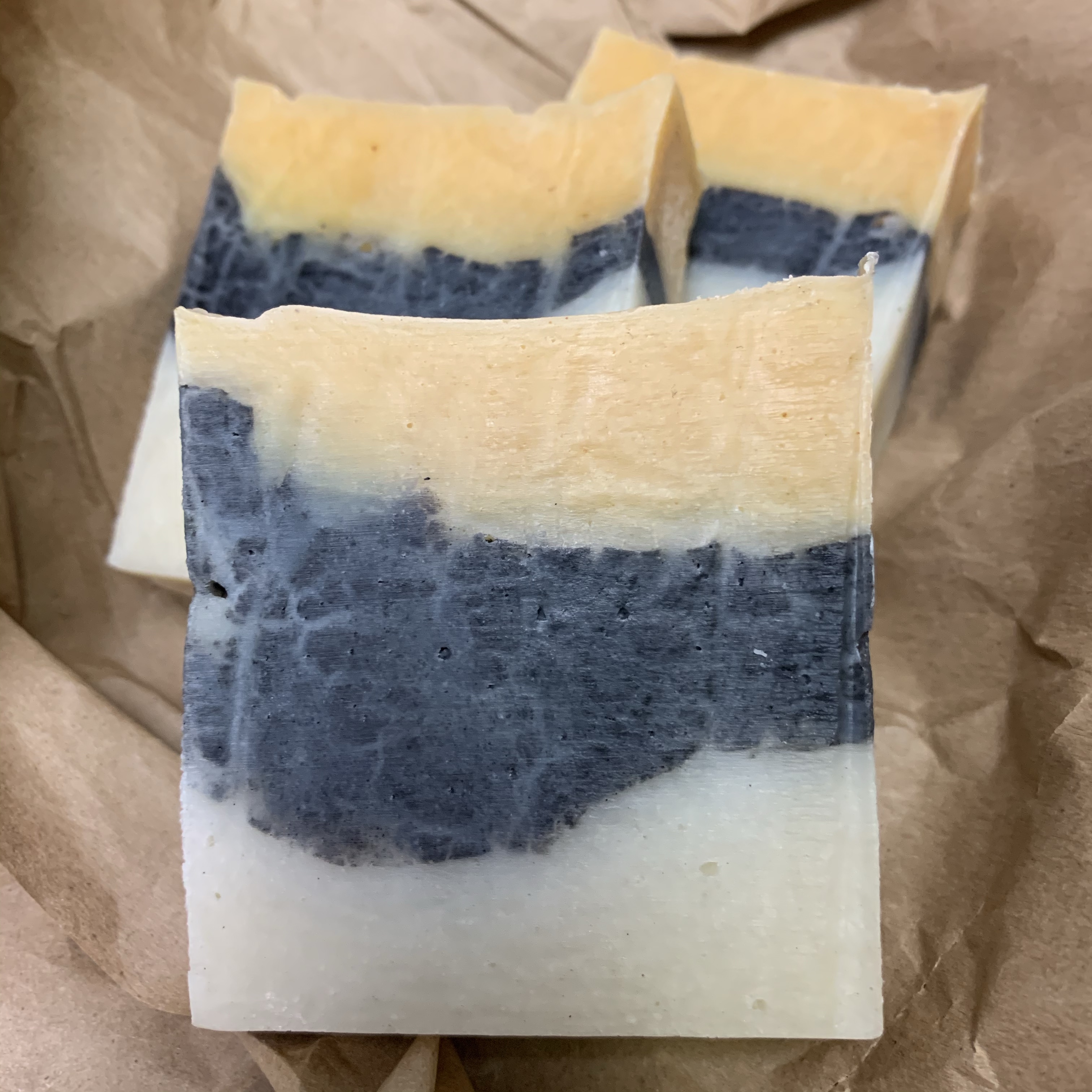 The fan favorite, this soap smells as good as it feels. Natural coconut fragrance will fill the shower, with coconut oils moisturizing the skin and charcoal removing toxins. Charcoal adds a gentle exfoliation, making this good for direct to skin scrubbing, or use with a wash cloth or poof.