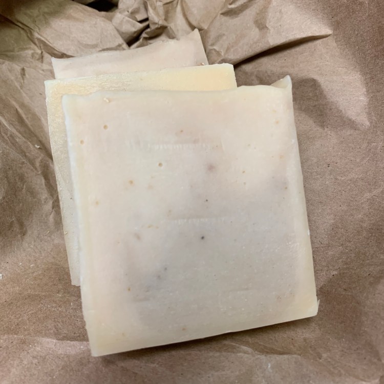 Ingredients: goat milk, saponified olive oil, coconut oil, sunflower oil, castor oil, shea butter, sodium lactate, oatmeal, chamomile extract, honey, bentonite clay