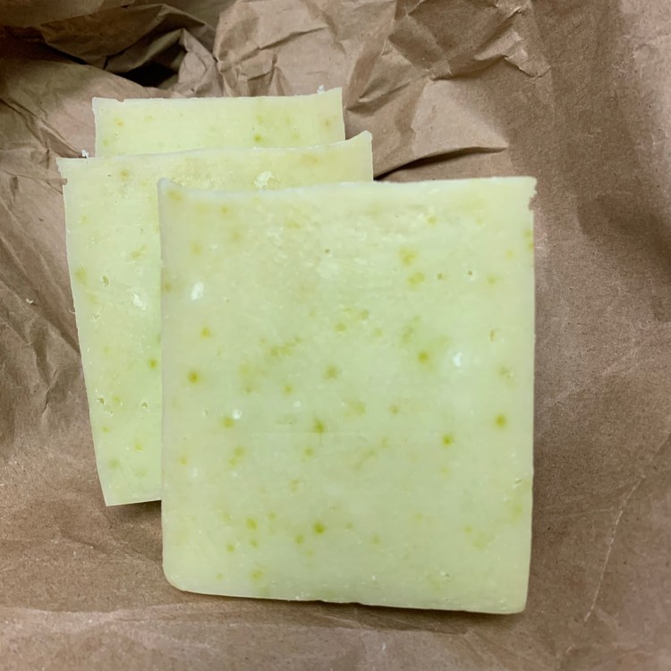 Ingredients: goat milk, saponified coconut oil, olive oil, cocoa butter, sunflower oil, castor oil, avocado oil, peppermint essential oil, sodium lactate, rose hip